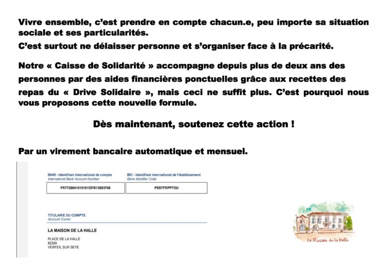 Appel à dons caisse de solidarité